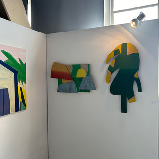 On the adjacent wall, I’m putting up the collage pieces I’ve made. I’ve placed them horizontally, centre-aligned, to let the eye follow around the wall. If they were not level like this, I think it would create confusion for the viewer, as if they think the composition gave a particular context to the work.